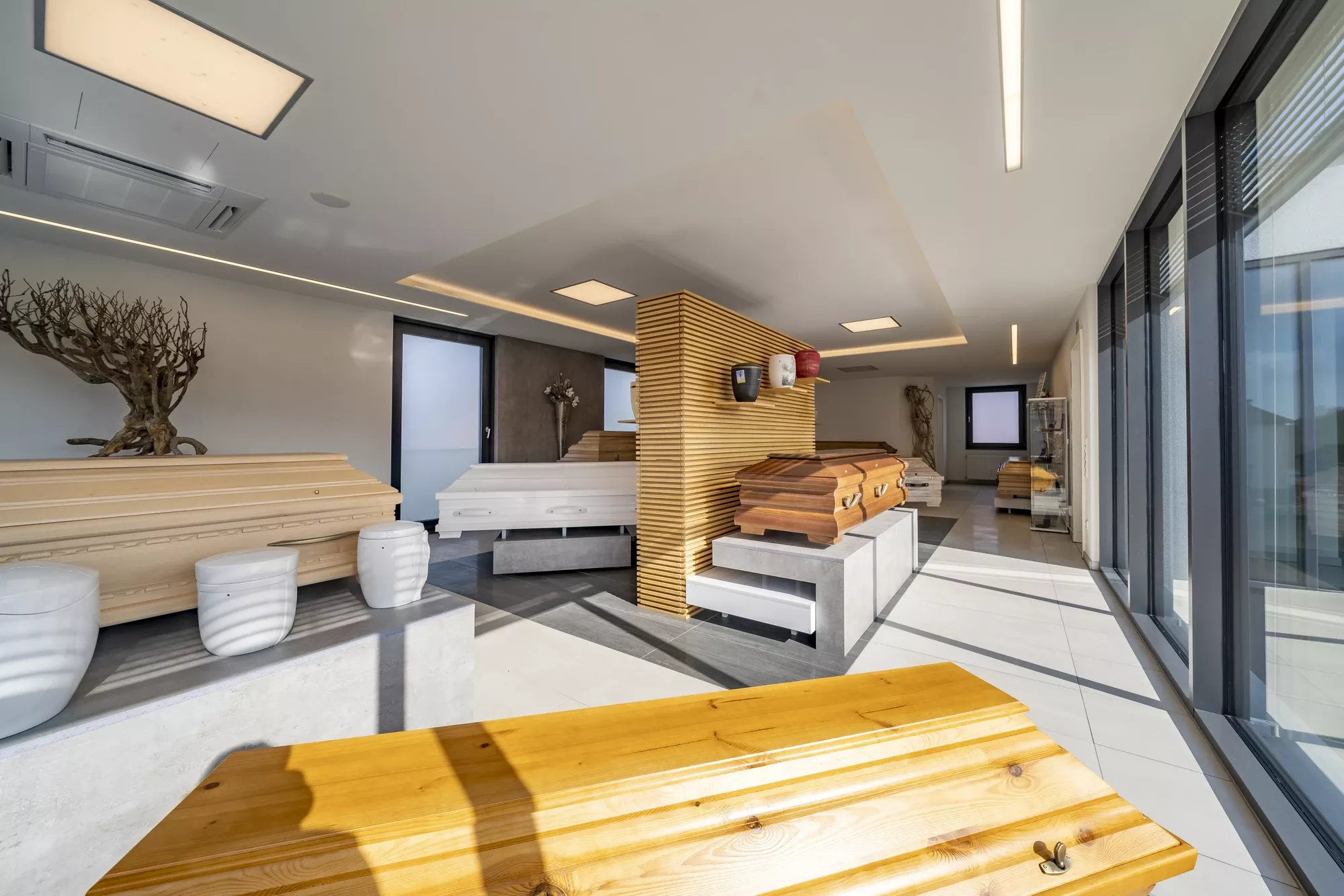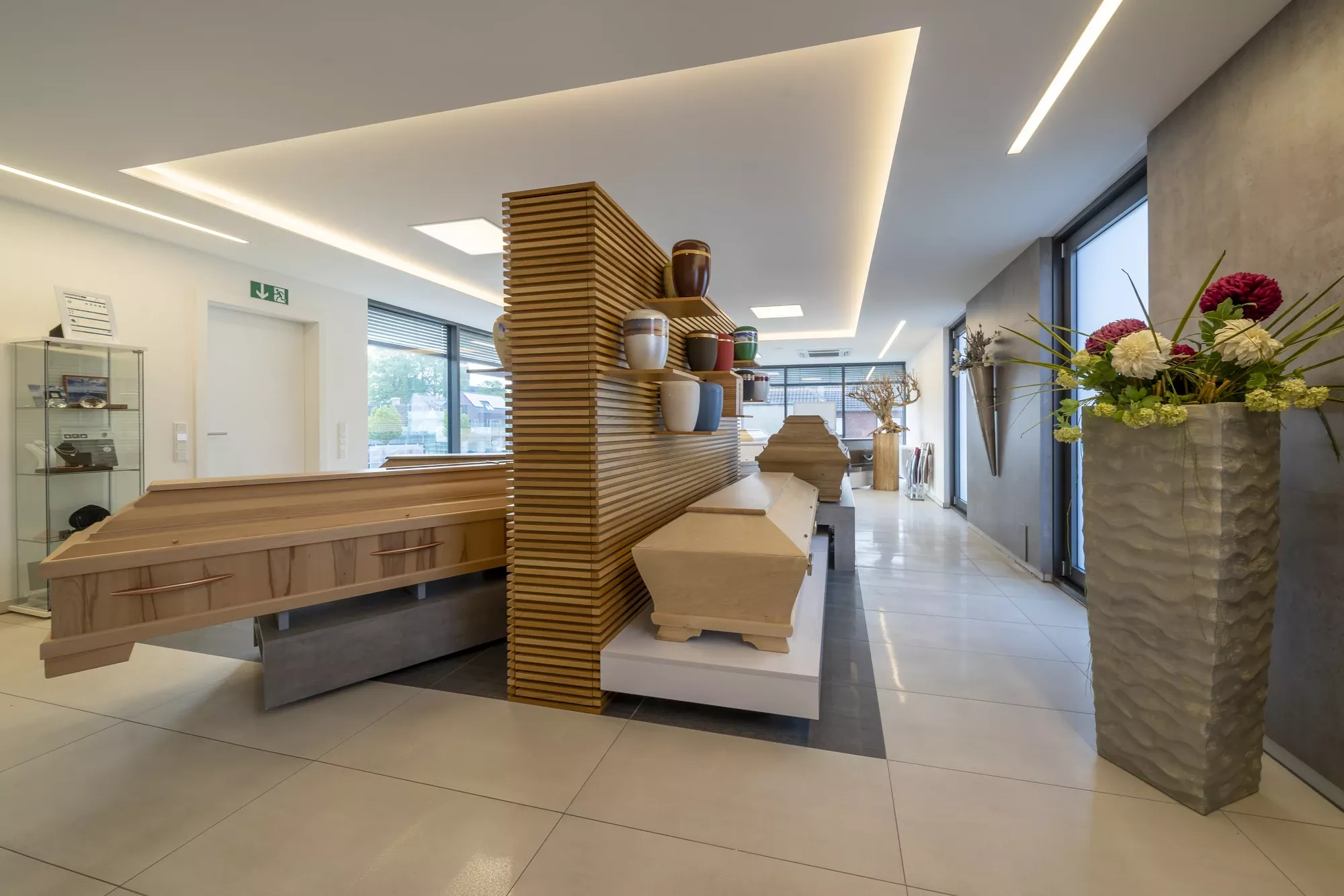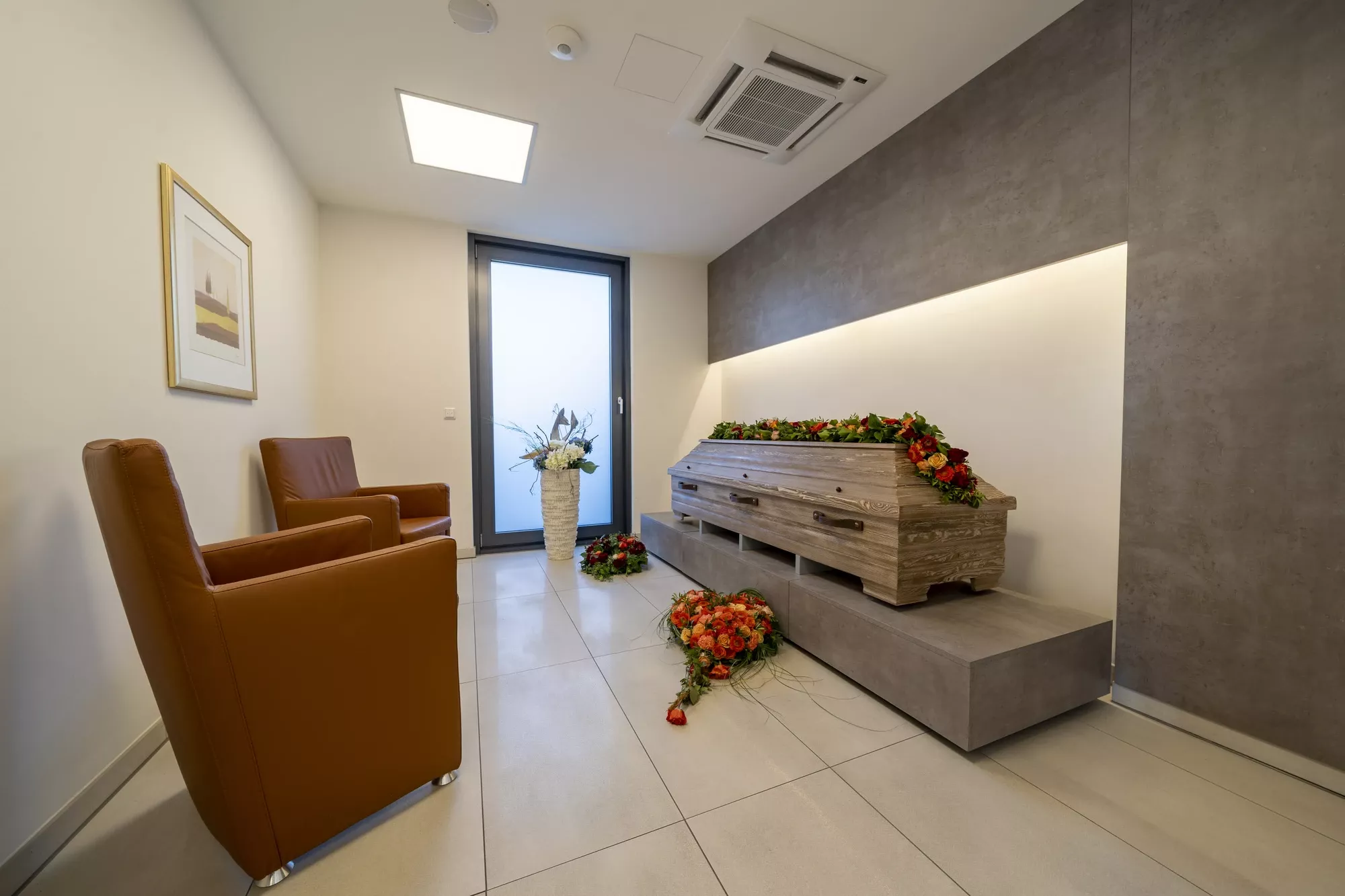 Wir empfangen Sie in unseren modern eingerichteten Räumlichkeiten. In privater Atmosphäre können wir ungestört und in Ruhe über alle Einzelheiten zur Trauerfeier und Bestattung sprechen.